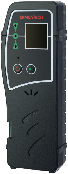 Az Ermenrich LR30 lézeres vevőegység segít rossz látási körülmények között vagy nagy távolságból meghatározni a lézersugár vízszinteshez képest helyzetét. A vevőegység a piros és a zöld sugarakat ismeri fel. A LED-jelzőfények segítenek a készülék megfelelő felállításában, hogy a lézersugár pontosan eltalálja az érzékelőt. A vevőegység háromlábú állványra szerelhető, illetve a házába beépített két vízmérték segítségével függőleges vagy vízszintes felületre helyezhető. A készüléket egy 9 V-os elem működteti, amely akár 30 órányi folyamatos munkát tesz lehetővé. Az alacsony töltésszint-jelző jelzi, hogy mikor kell elemet cserélnie, hogy ne kelljen megszakítani a munkát. A készülék 10 perc inaktivitás után automatikusan kikapcsol, segítve az energiamegtakarítást. Felhívjuk figyelmét: a vevőegység csak olyan lézeres szintezőkkel működik, amelyek támogatják az impulzus üzemmódot a 10 kHz-es frekvencián, a vevőegység frekvenciájával egyezően. Főbb jellemzők: