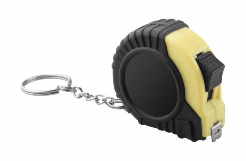Műanyag mérőszalag fékező funkcióval, fém klipsszel és kulcskarikával, 2 m.